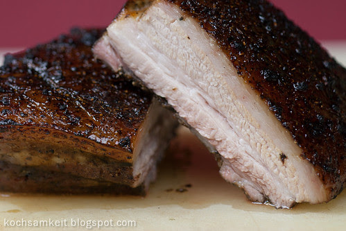 - Rhabarber wie hier zubereiten (1/3 der dortigen Menge), abkühlen lassen und auf das Mousse verteilen.